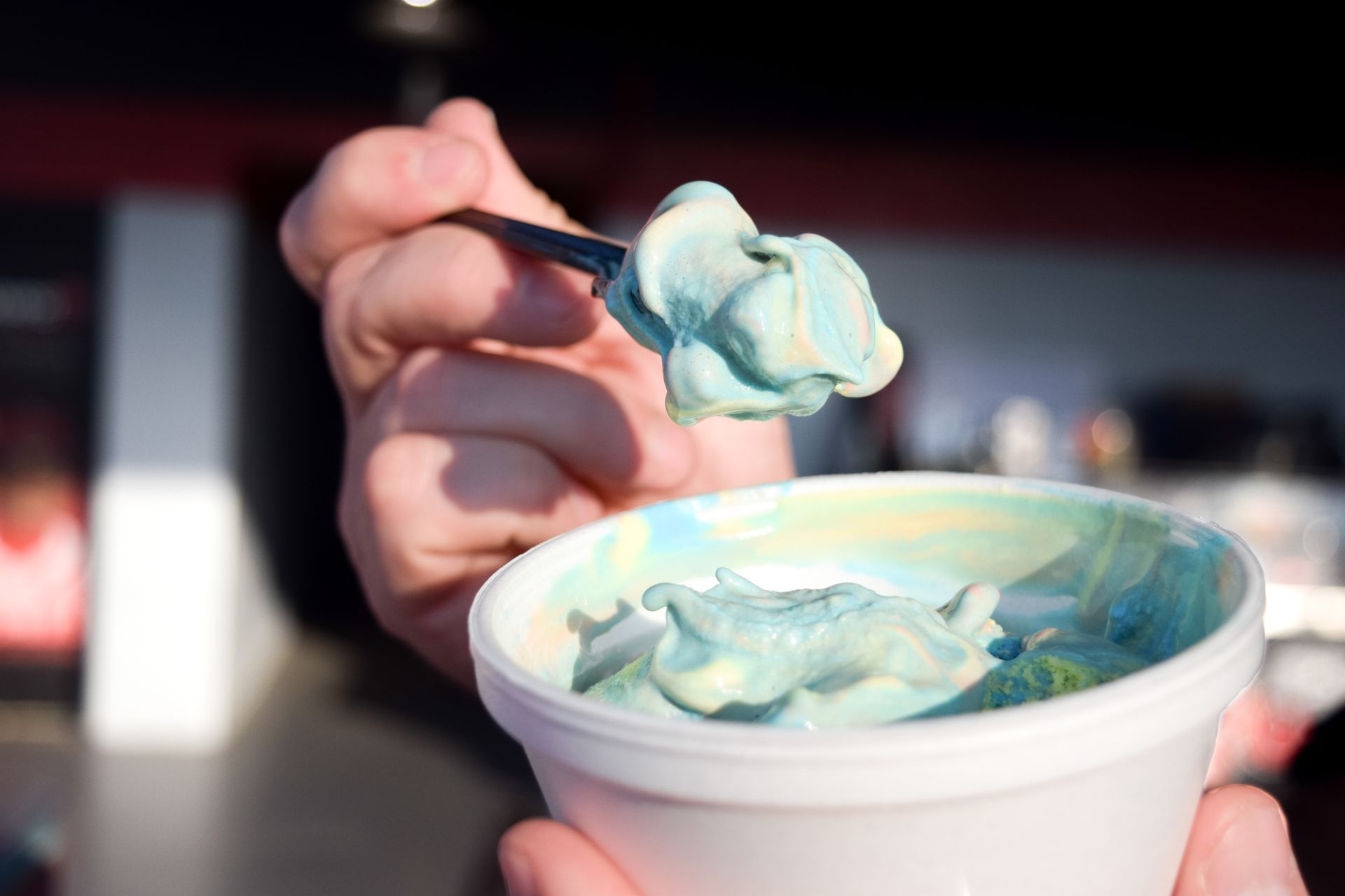 Vanilla base dough with M&Ms mixed in. Sold as dough ball or 8 oz cup.