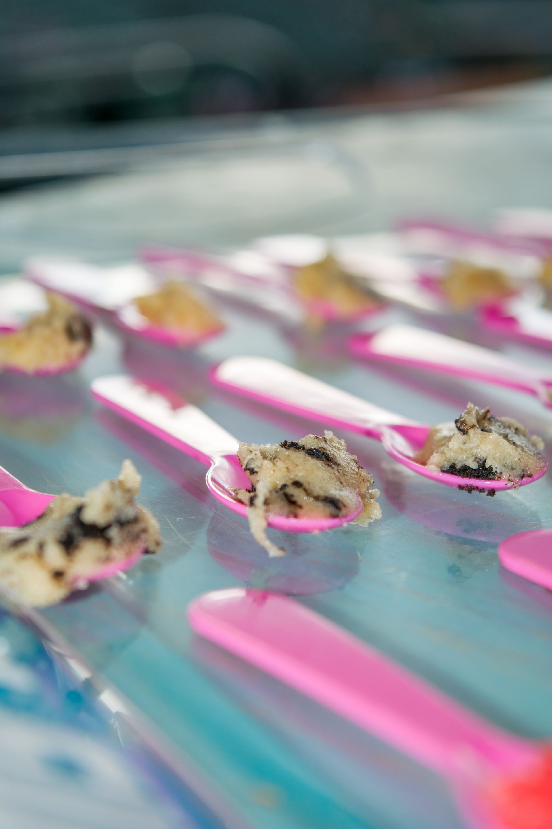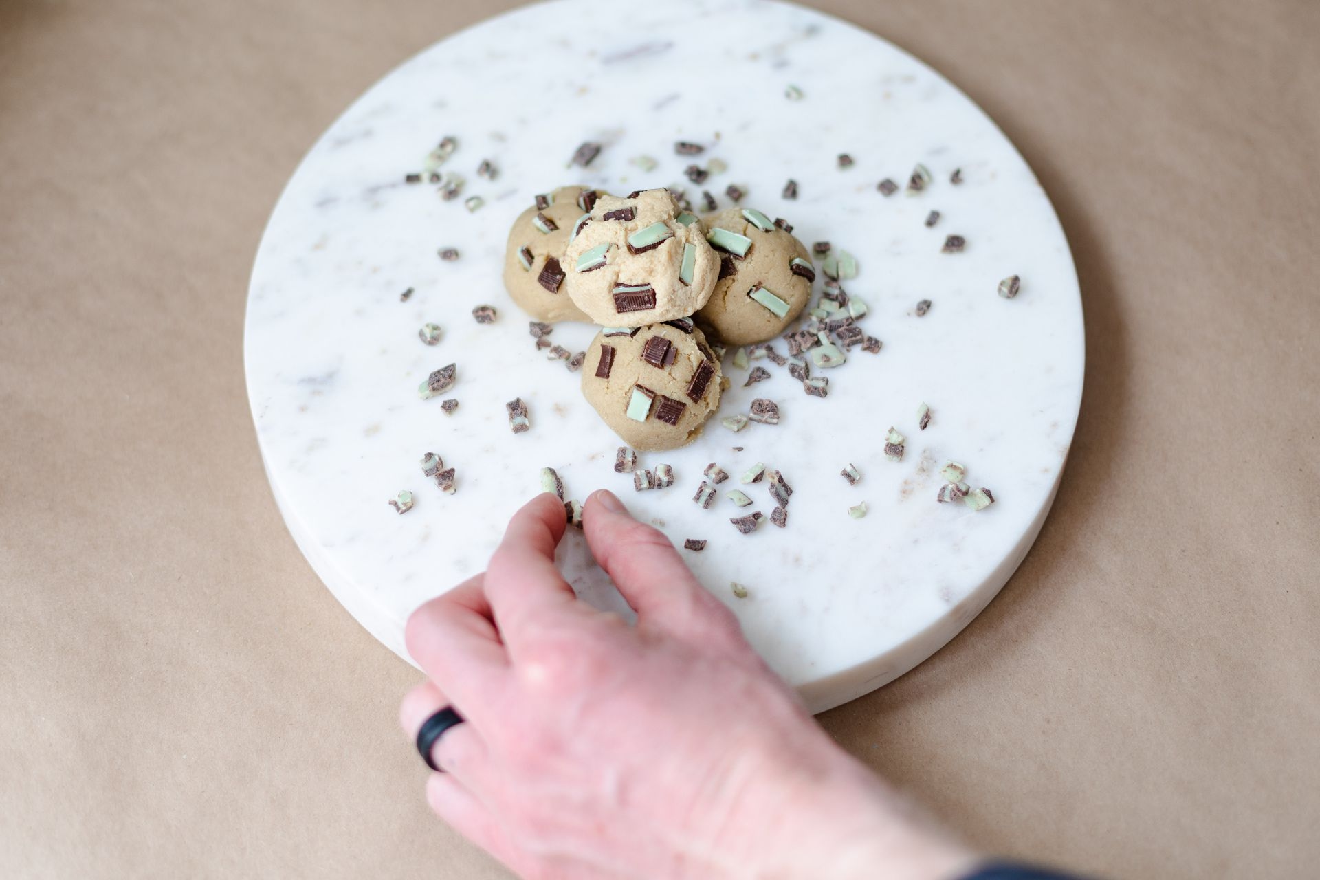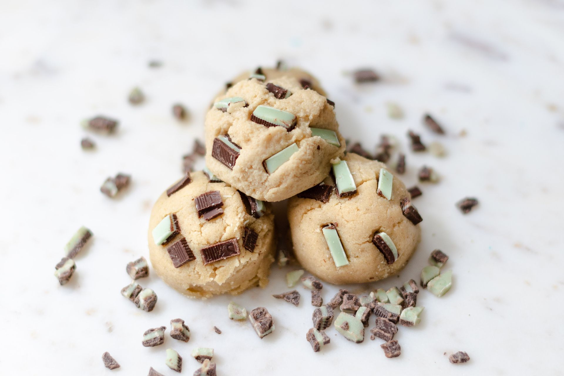 Vanilla base with Andes mints mixed in. Sold as dough ball or 8 oz cup.