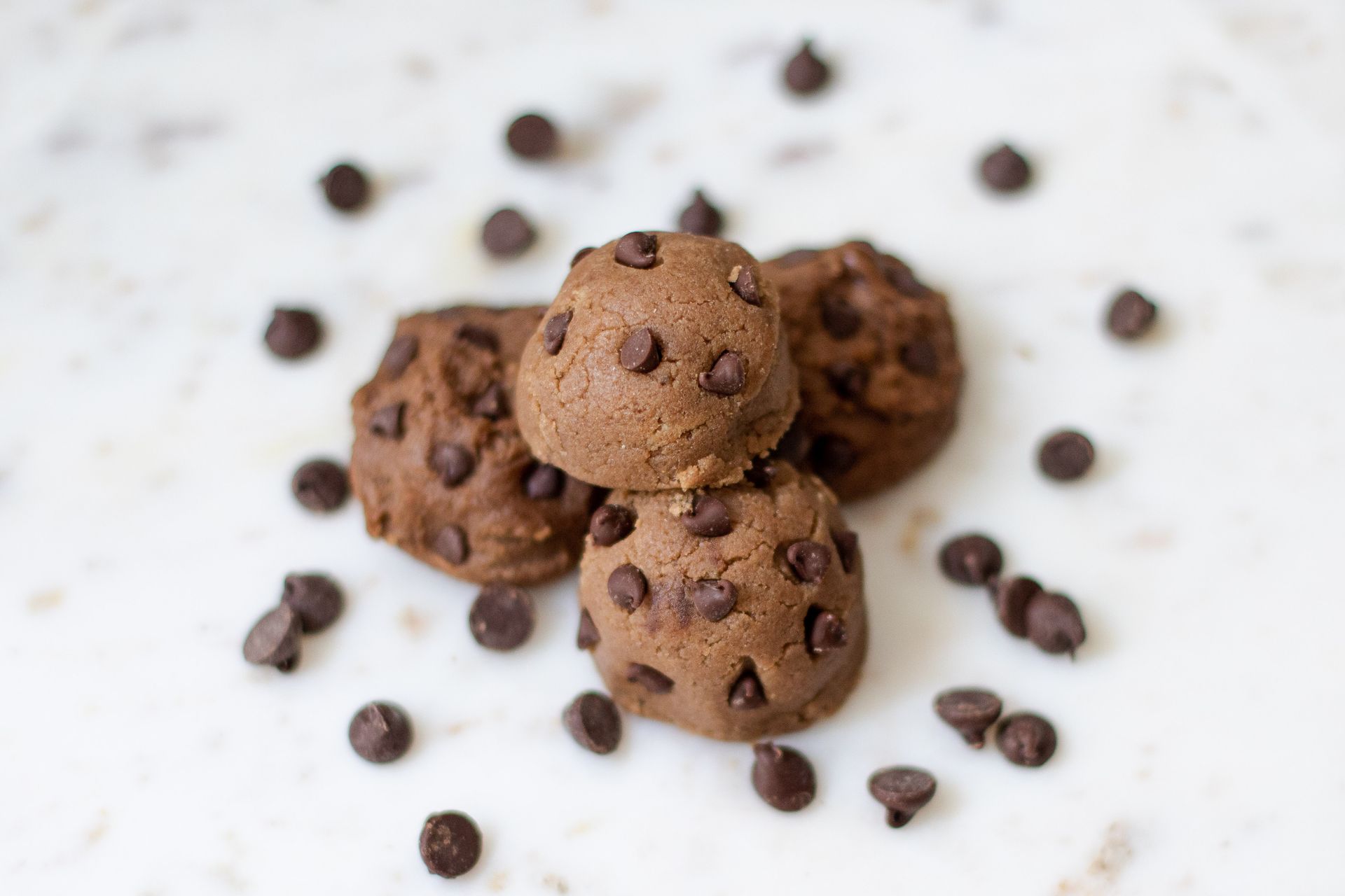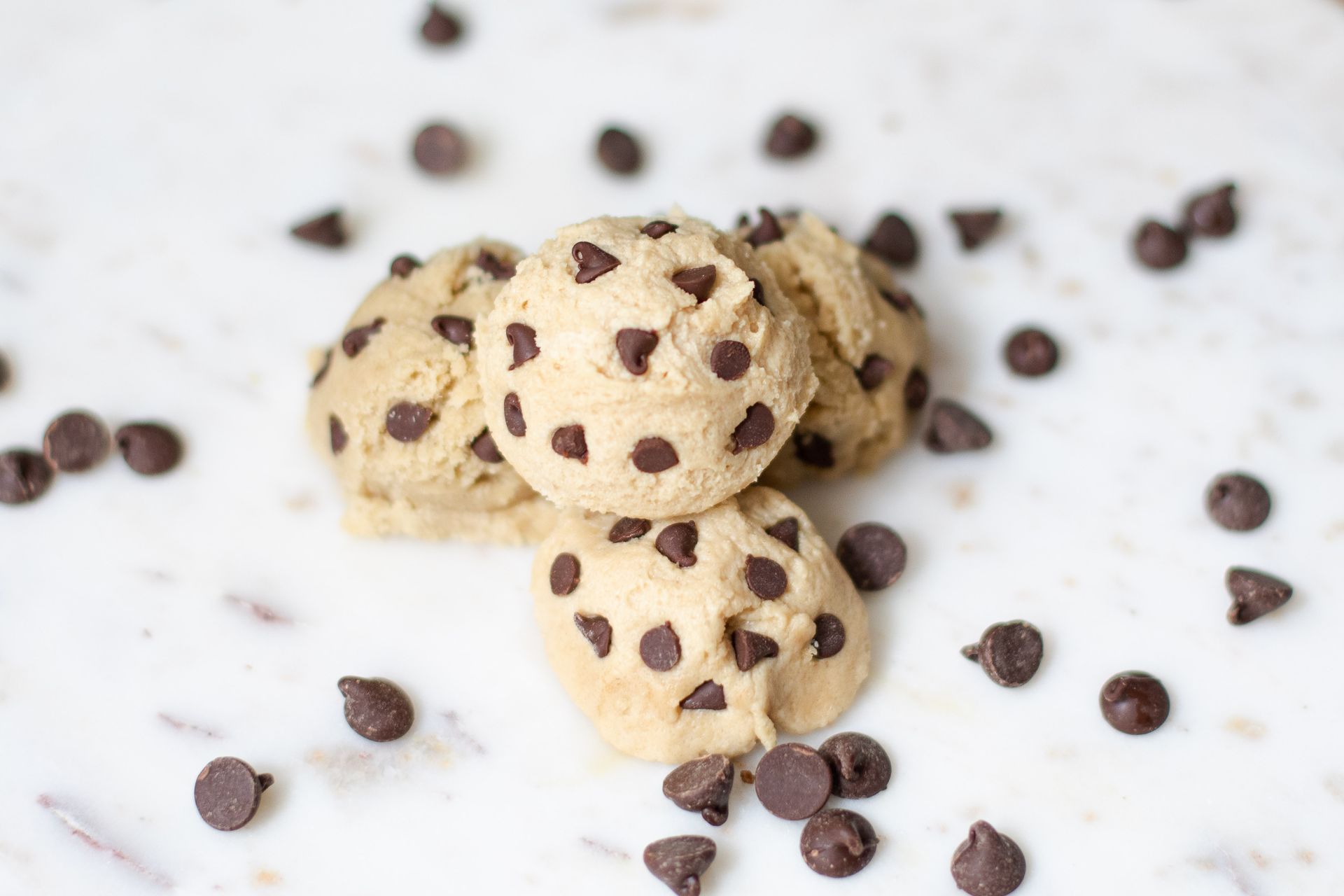 Classic chocolate chip cookie dough is sold as a dough ball or 8 oz cup.